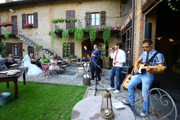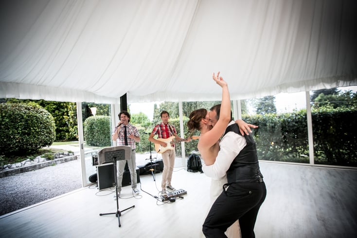 Ogni evento di cui ci occupiamo ha un carattere dovuto al luogo e alle persone che lo vivono e gestiscono. A volte è una villa antica dal valore storico, altre volte un cascinale immerso nella natura, altre volte ancora una location di stampo moderno. Una corte all'aperto, un prato, una sala da pranzo importante o resa intima da un camino. Dalla luce del mezzogiorno all'imbrunire, suonare dal vivo con tutti questi differenti stimoli è ciò che amiamo fare ed è il nostro lavoro.